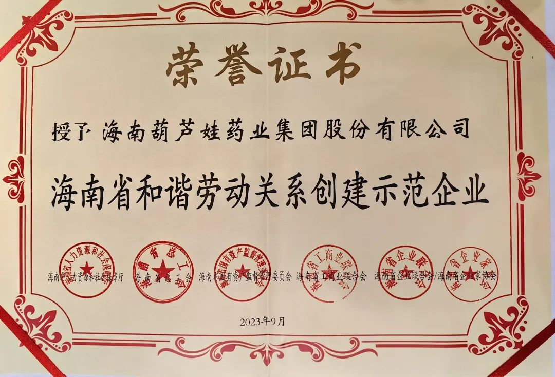必威betway药业集团获评“海南省和谐劳动关系创建示范企业”
